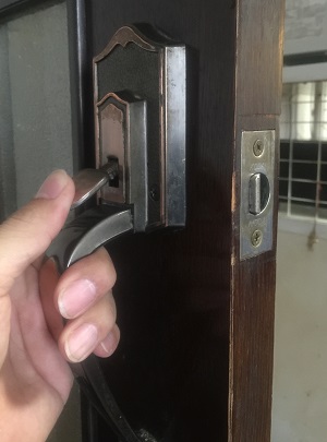 室内ドアのハンドルが動かしにくいとのご相談を受け、現場へ伺いました。築20年以上の戸建住宅で、これまでハンドル交換は一度もされていなかったとのことです。